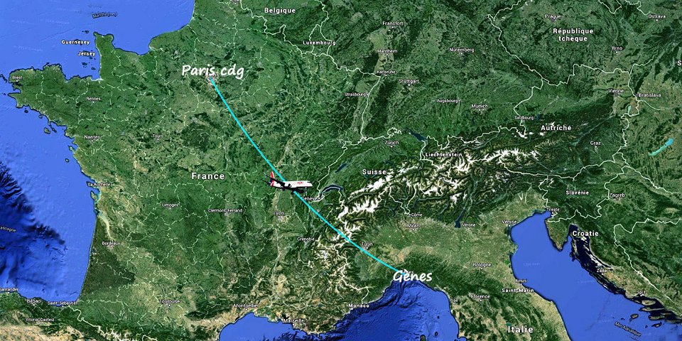 1 h 15 en avion