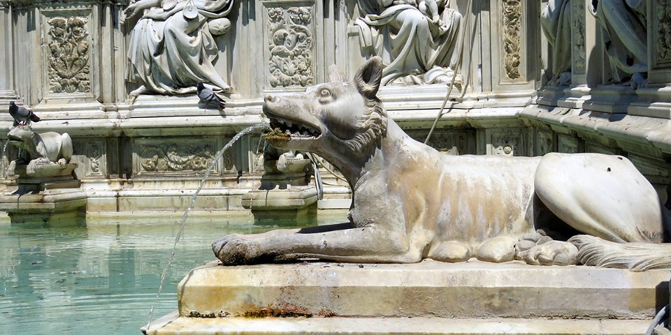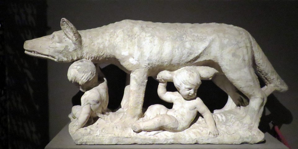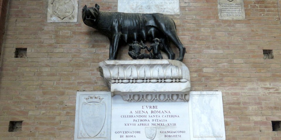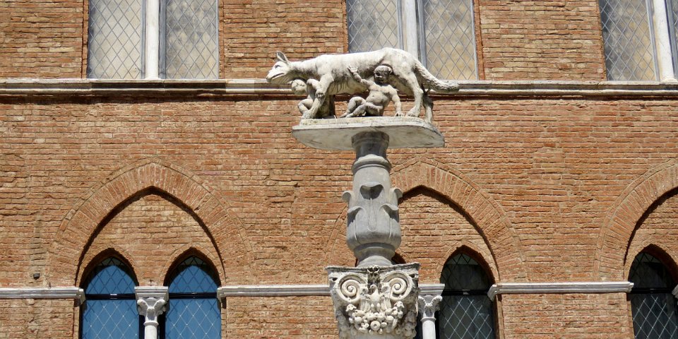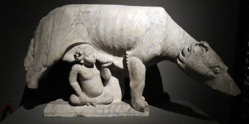 Louve allaitant Senio qui donna son nom à Sena (Sienne)